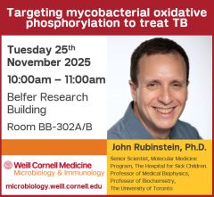 Carl Nathan, M.D. Lectureship: "Targeting mycobacterial oxidative phosphorylation to treat TB" - Dr. John Rubinstein